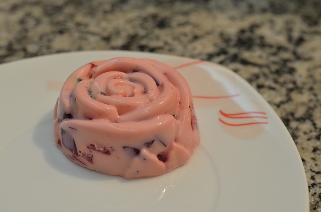 - Dissolver a gelatina sabor morango de acordo com as instruções da embalagem (sem levar para a geladeira!).